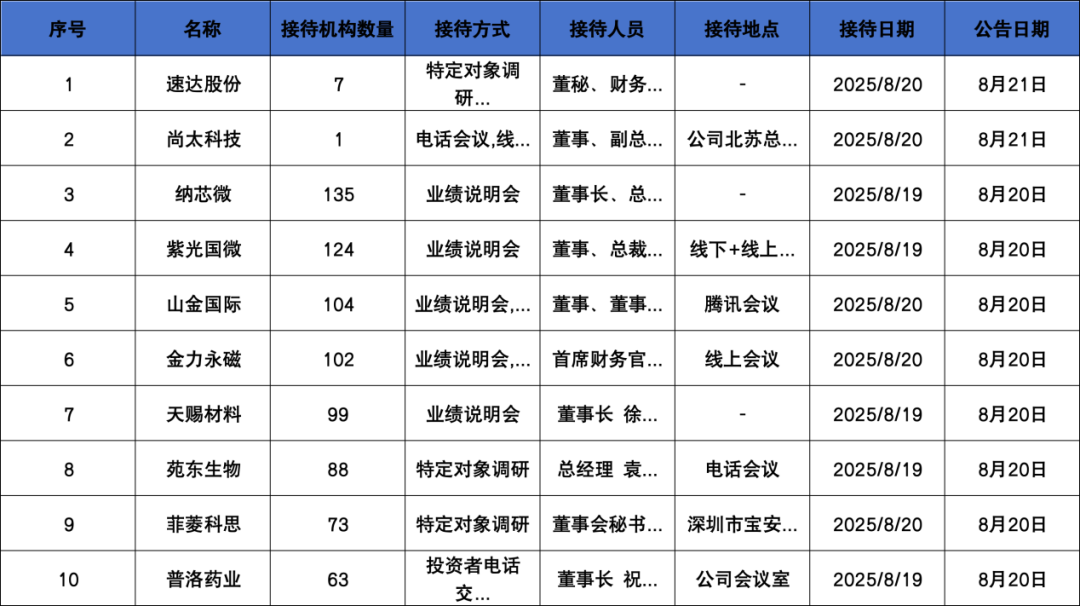 重点机构:高毅资管、华夏基金、嘉实基金、景顺长城基金
