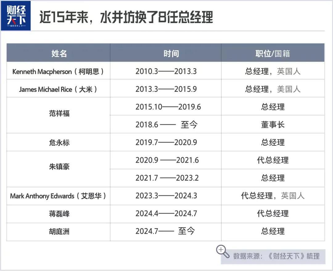 2010年,随着母公司全兴集团被全球知名洋酒巨头帝亚吉欧逐步收购,水井坊迎来了第一位“洋人”总经理——英国人柯明思,但做了三年水井坊总经理后,柯明思因“个人原因”辞职。